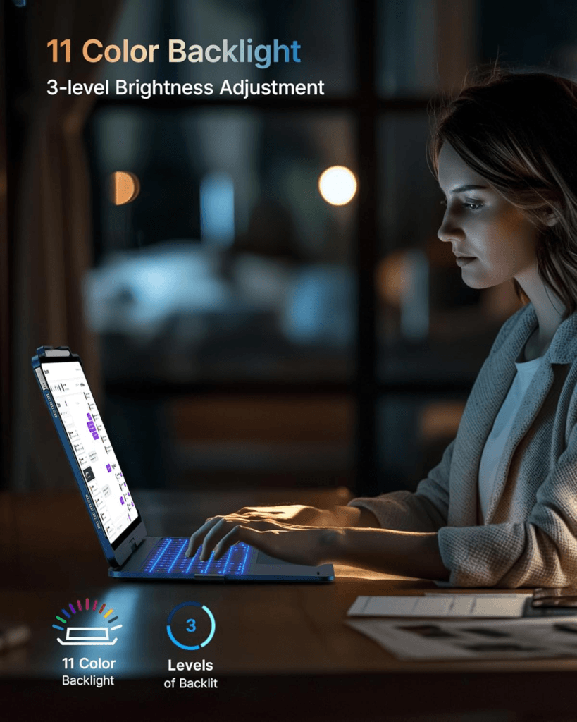 Precise Multi-Touch Trackpad – Navigate your iPad with ease using the built-in trackpad, offering a laptop-like experience with gesture controls.
