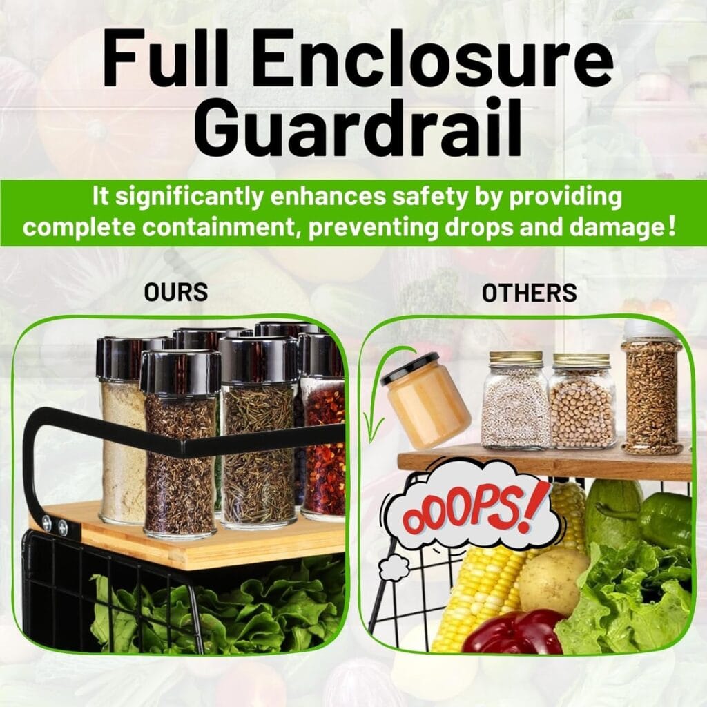 - Spacious Storage: Ideal for holding fruits, potatoes, onions, spices, or pantry essentials, keeping everything organized and within reach.